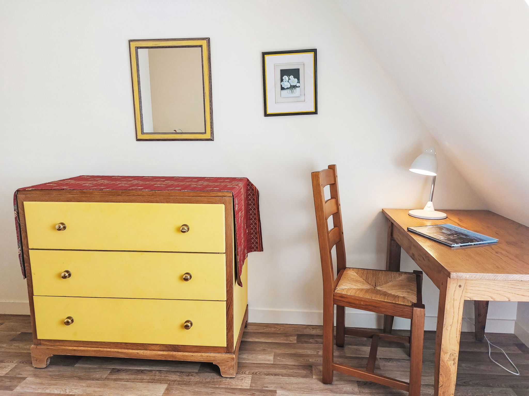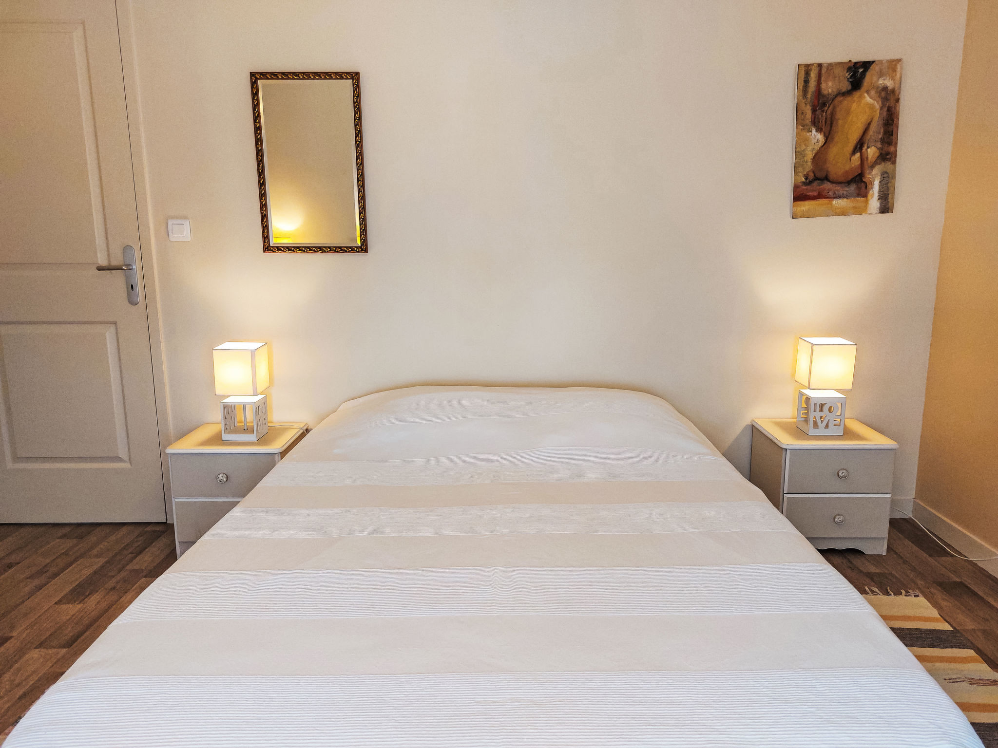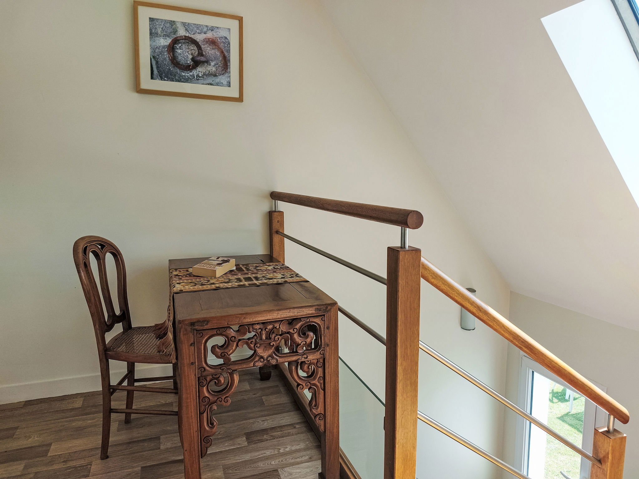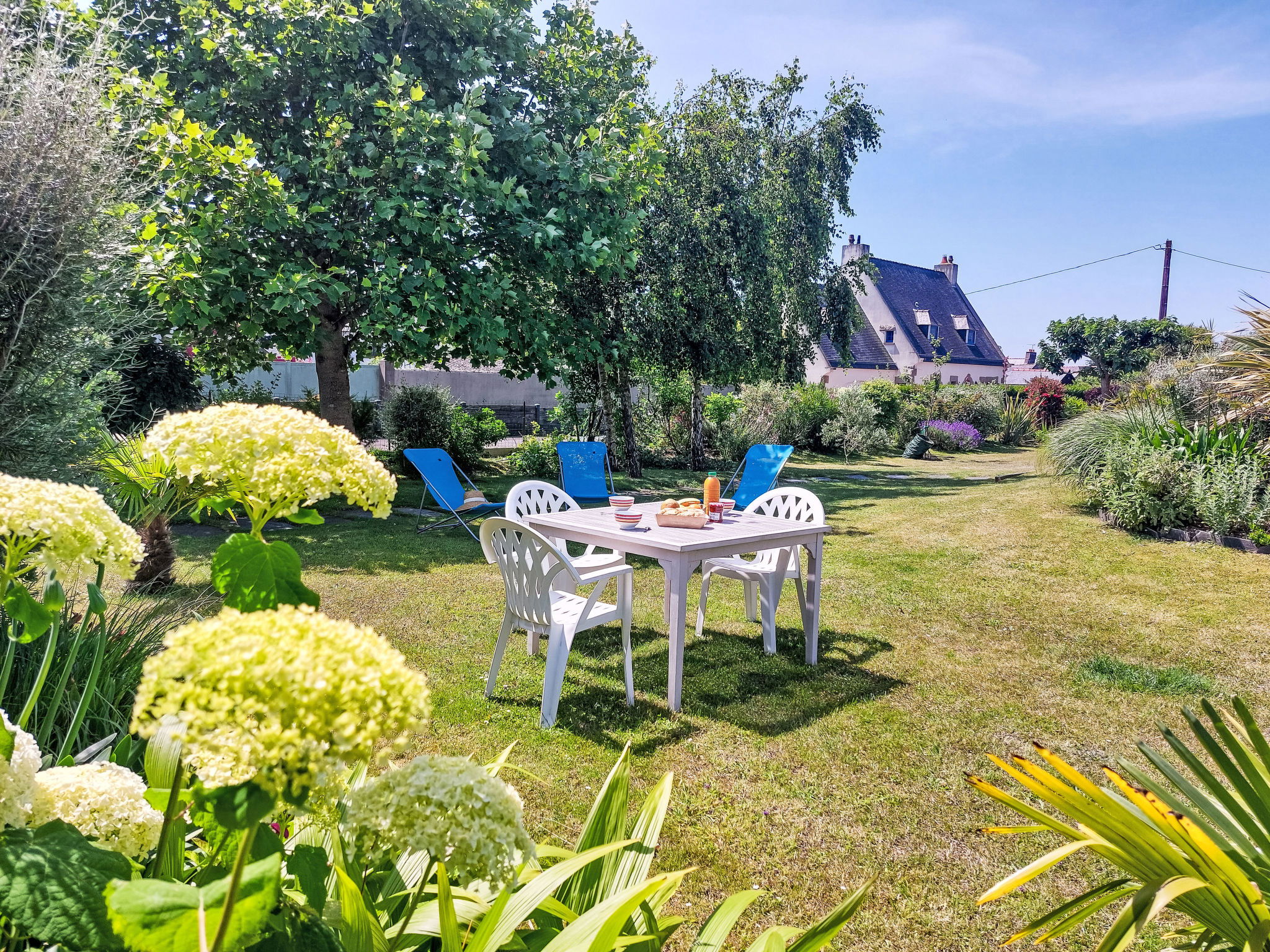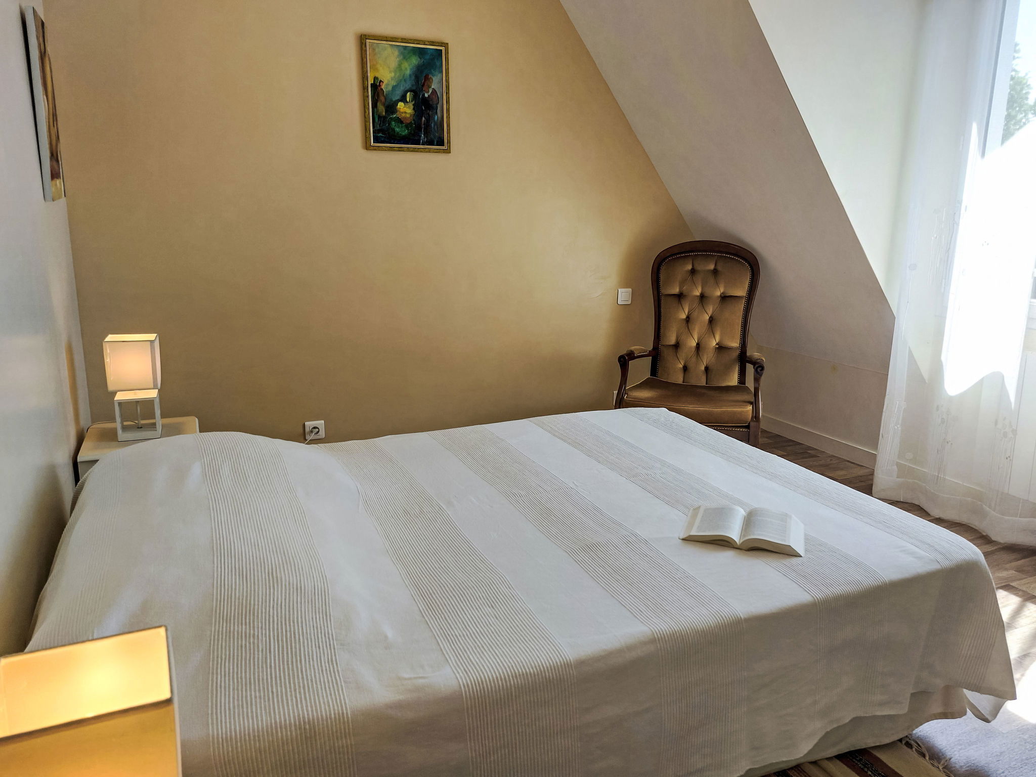 2-family house "La Note Bleue". 1 km from the centre of Cancale, 18 km from the centre of Saint Malo, in the residential district, 300 m from the sea, in a cul-de-sac. For shared use: property 1'000 m2 (fenced) with lawn and trees, parking on the premises. Grocery 1 km, supermarket 2 km, restaurant 2.5 km, bus stop 1 km, sandy beach 2.5 km. Marina 1.5 km. Please note: the owner lives in the same residence.