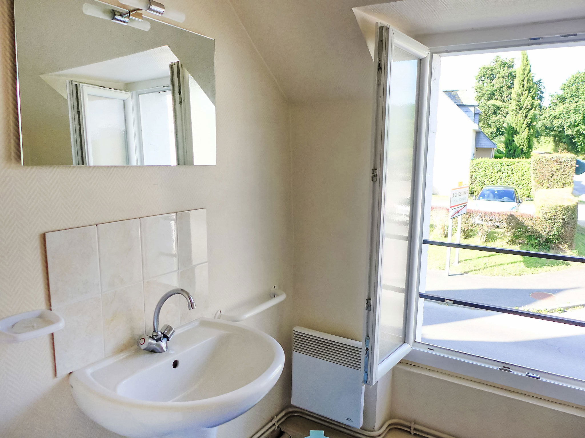 2-room apartment 36 m2 on 1st floor. Simple and practical furnishings: living/dining room with 1 double sofabed (1 x 140 cm, length 190 cm), TV. 1 room with 2 beds (90 cm, length 190 cm). Kitchenette (2 hot plates, oven, dishwasher, toaster, kettle, electric coffee machine). Bathroom, sep. WC. Electric heating. Facilities: washing machine. Please note: non-smokers only. 1 small pet/ dog allowed. Smoke alarm. Common entrance garden side with the apartment " Groix " FR2736.120.2 . Please note : access via a steep staircase (15 steps) . Housing is on the street side. WIFI not possible.