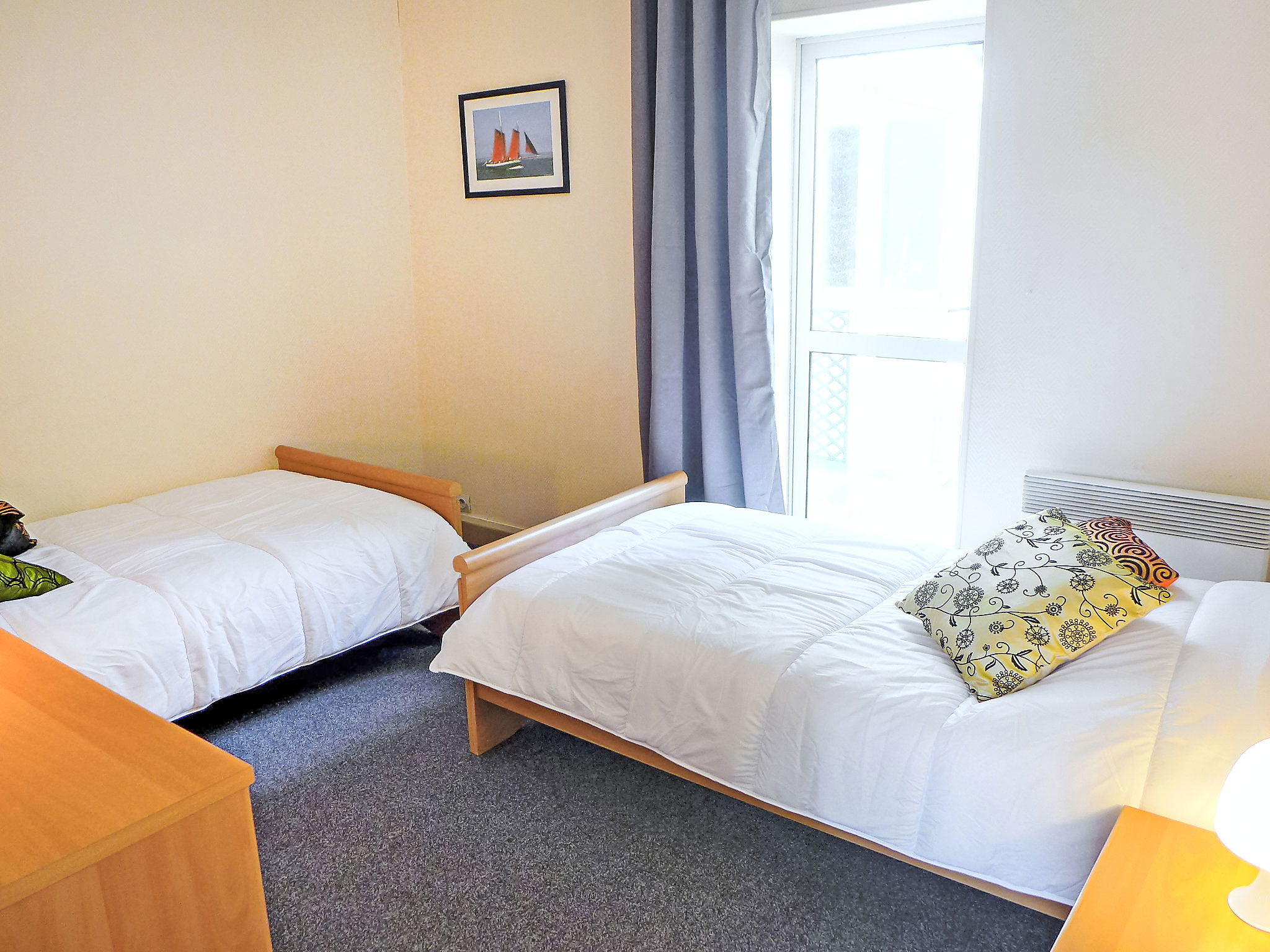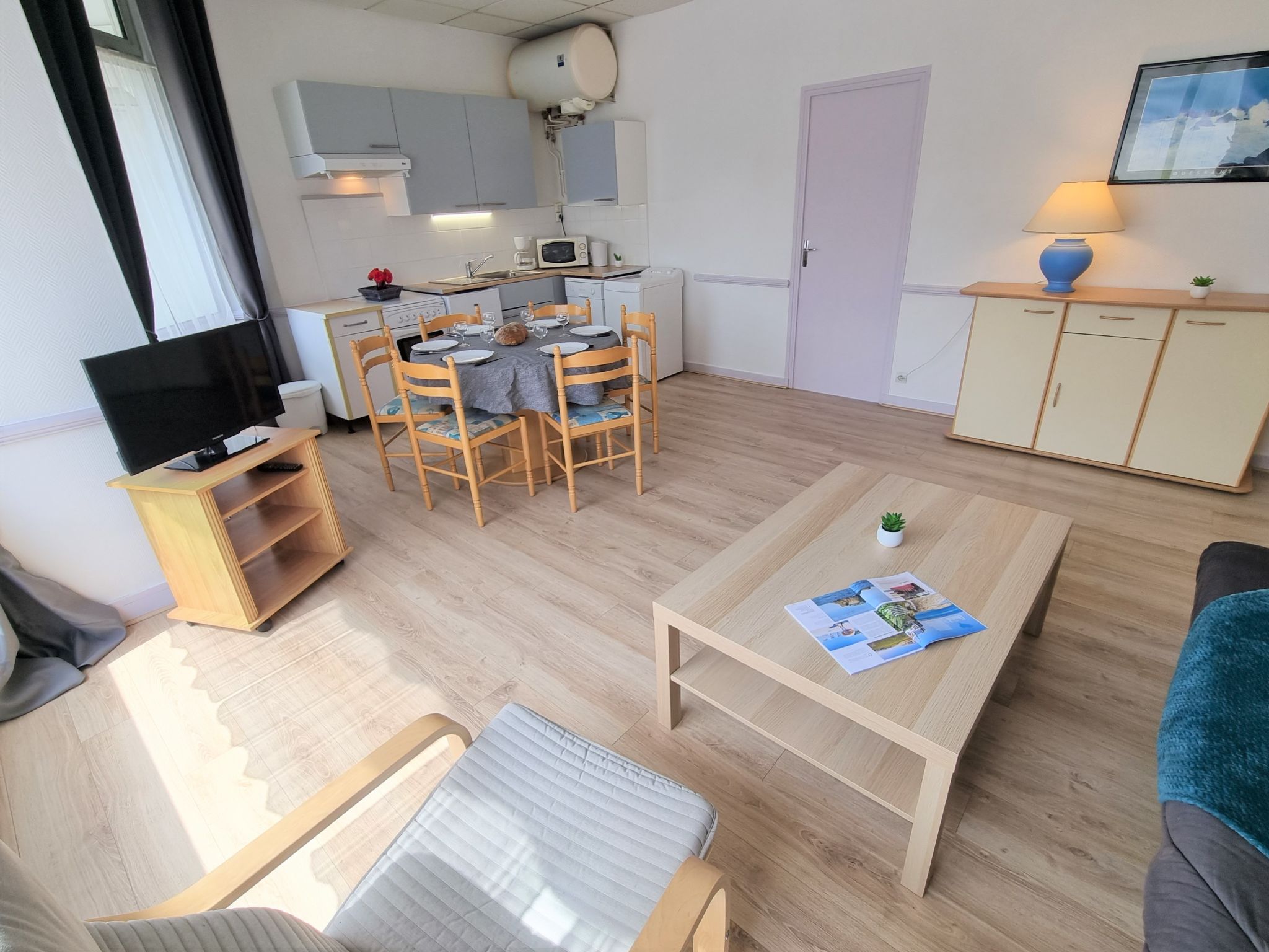 3-room apartment 57 m2, on the ground floor. Bright, simple and practical furnishings: living/dining room with 1 double sofabed (1 x 140 cm, length 190 cm), TV. 1 room with 2 beds (90 cm, length 190 cm). Exit to the garden. 1 room with 1 french bed (1 x 140 cm, length 190 cm). Exit to the veranda. Kitchenette (2 hot plates, oven, dishwasher, toaster, kettle, microwave, electric coffee machine). 2 showers, sep. WC. Electric heating. Terrace furniture. Facilities: washing machine, iron. Please note: non-smokers only. 1 small pet/ dog allowed. Smoke alarm. WIFI not possible.