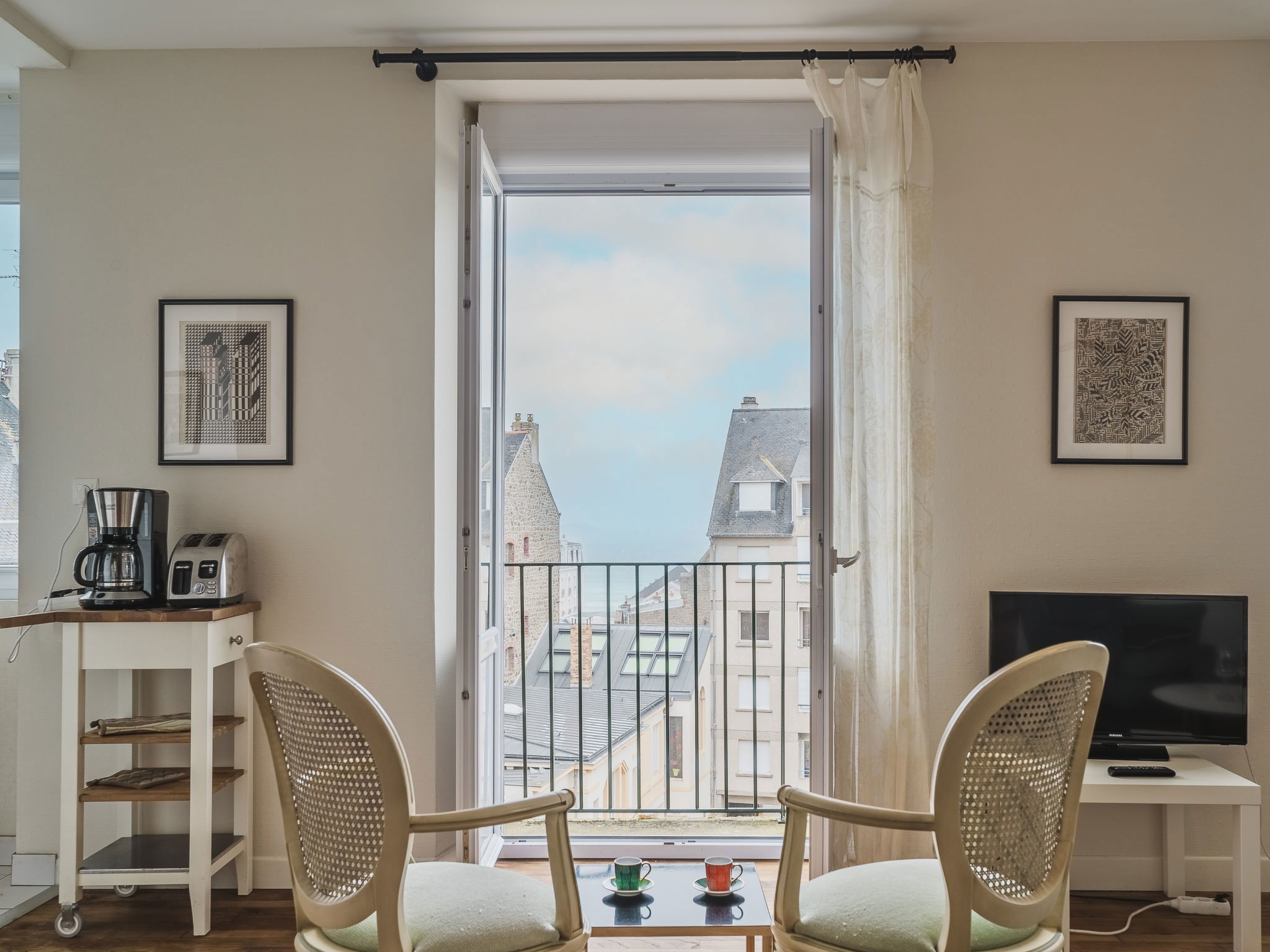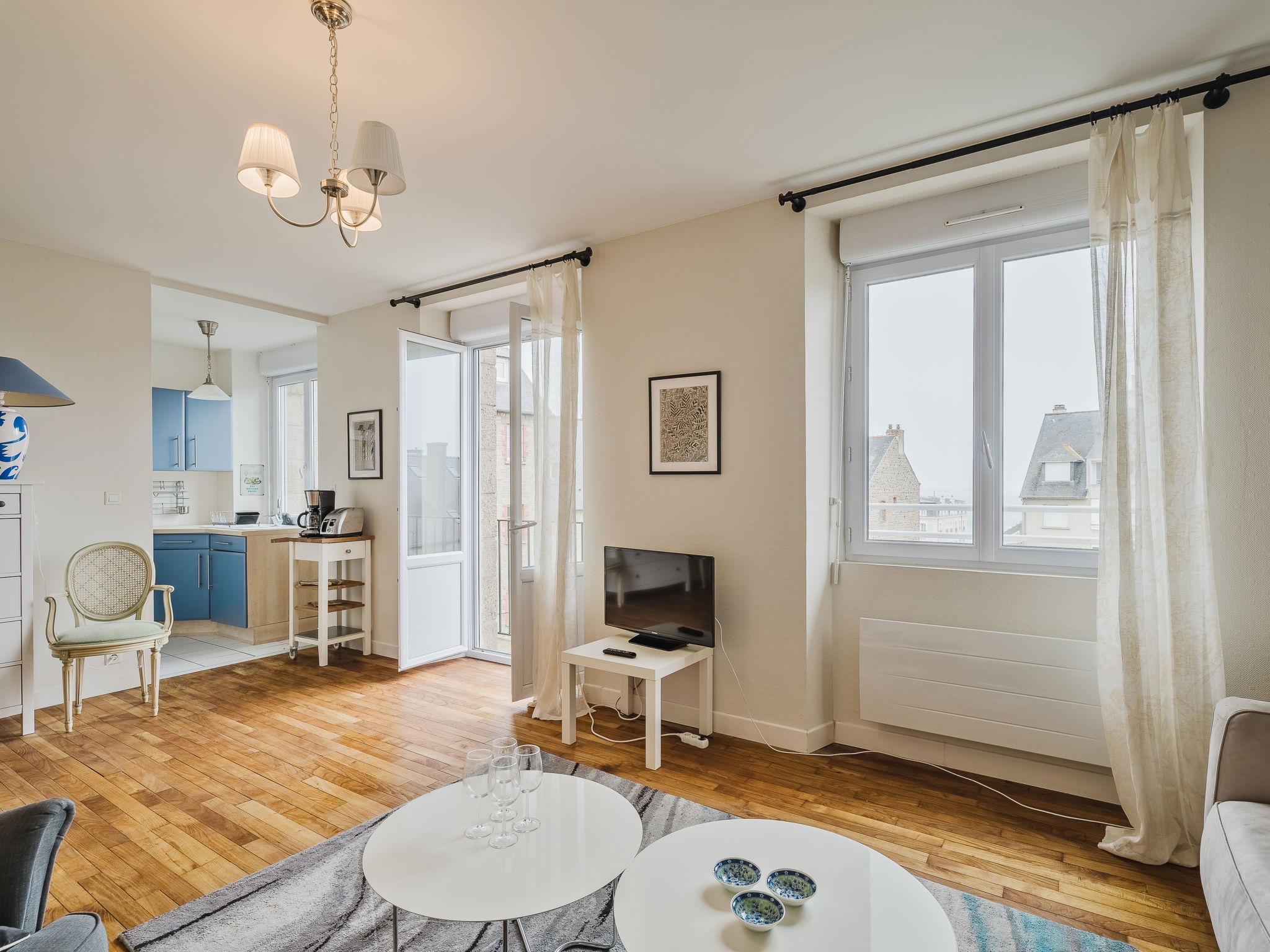 Residence "L'Anse", 4 storeys. In the centre of Dinard, excellent location: right in the centre but still quiet, 200 m from the sea. Public parking on the road. Shop 50 m, grocery 80 m, supermarket 350 m, shopping centre 3.5 km, restaurant, bar 50 m, bakery 70 m, café 80 m, pedestrian zone 150 m, bicycle rental 300 m, bus stop "Le Gallic" 180 m, railway station "SNCF Saint Malo" 10 km, ferry "Gare maritime du Naye" 11.3 km, sandy beach "L'Ecluse" 250 m, park "Port Breton" 1.5 km, outdoor swimming pool 550 m, indoor swimming pool 250 m, thermal baths "Thalasso Dinard" 2.5 km. Sports harbour 550 m, golf course (18 hole) 10.6 km, surf school 150 m, sailing school 550 m, tennis 2.5 km, indoor tennis centre 1.5 km, minigolf 1.7 km, riding stable 2.9 km, sports centre 1.8 km, walking paths from the house 200 m. Nearby attractions: Saint-Briac sur Mer 7 km, Saint-Malo 12 km, Dinan 22 km, Cancale 23 km, Mont Saint-Michel 60 km, Cap Fréhel/Fort La Latte 37 km. Please note: no lift.