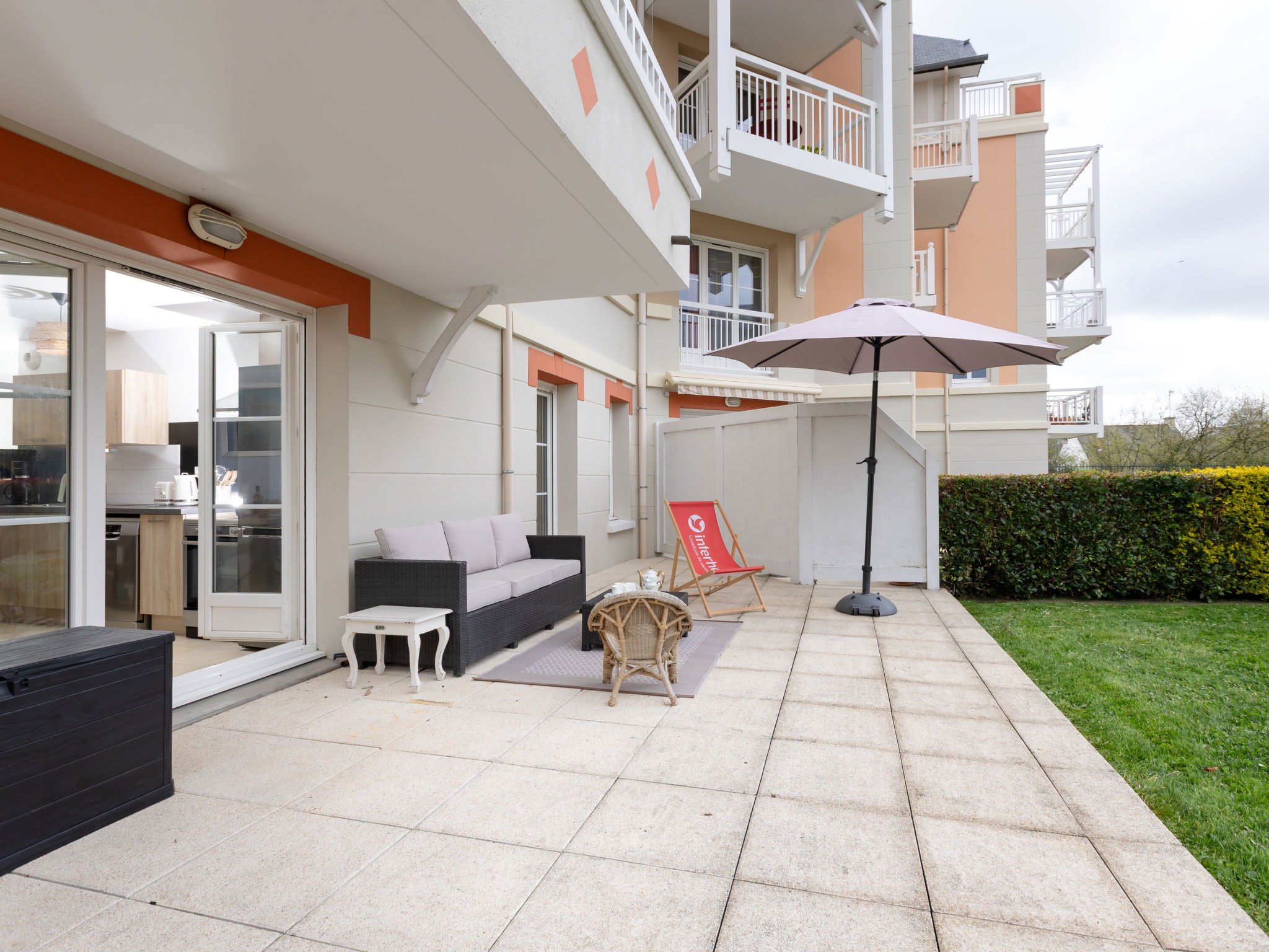 Residence "Les Orchidées", 5 storeys. In the resort 1 km from the centre of Dinard, 1 km from the sea, 1 km from the beach. Grocery 1 km, supermarket 2.3 km, restaurant 750 m, bakery 800 m, bus stop "Office du Tourisme" 1.4 km, railway station "Saint Malo" 8 km, sandy beach "Prieuré" 1 km, thermal baths "Thalasso de Dinard" 2 km. Sports harbour 1.3 km, sailing school 1.5 km, minigolf 1.7 km. Nearby attractions: Grand Aquarium de Saint Malo 7 km, Saint Malo Intra muros 8 km, Dinan 20 km, Cancale 20 km, Cap Fréhel et Fort La Latte 36 km, Mont Saint Michel 57 km. Hiking paths: Chemin des douaniers 2.2 km. The keys‘ handover takes place by the agency in Dinard, 2 km.