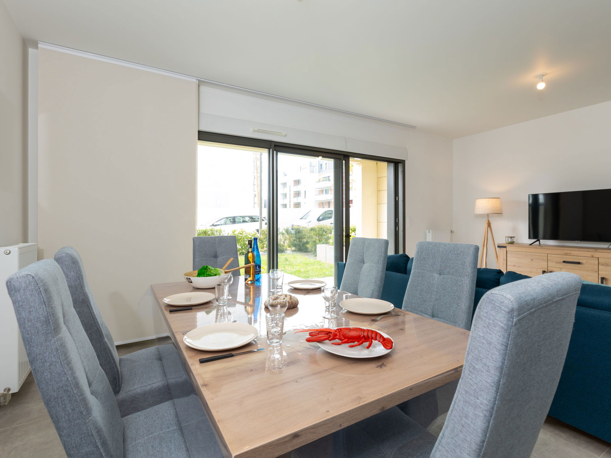 3-room apartment 68 m2, on the ground floor. Comfortable and tasteful furnishings: living/dining room with TV (flat screen). Exit to the garden, to the terrace. 1 room with 1 french bed (1 x 140 cm, length 190 cm). 1 room with 1 french bed (1 x 160 cm, length 190 cm). Open kitchen (oven, dishwasher, 3 ceramic glass hob hotplates, toaster, kettle, microwave, electric coffee machine). Shower, sep. WC. Gas heating. Small terrace 10 m2, south facing position, garden 20 m2, south facing position. Facilities: washing machine. Internet (WiFi, free). Garage. Please note: non-smokers only. Smoke alarm. Offer by a private individual according to Art. 155, IV of CGI.