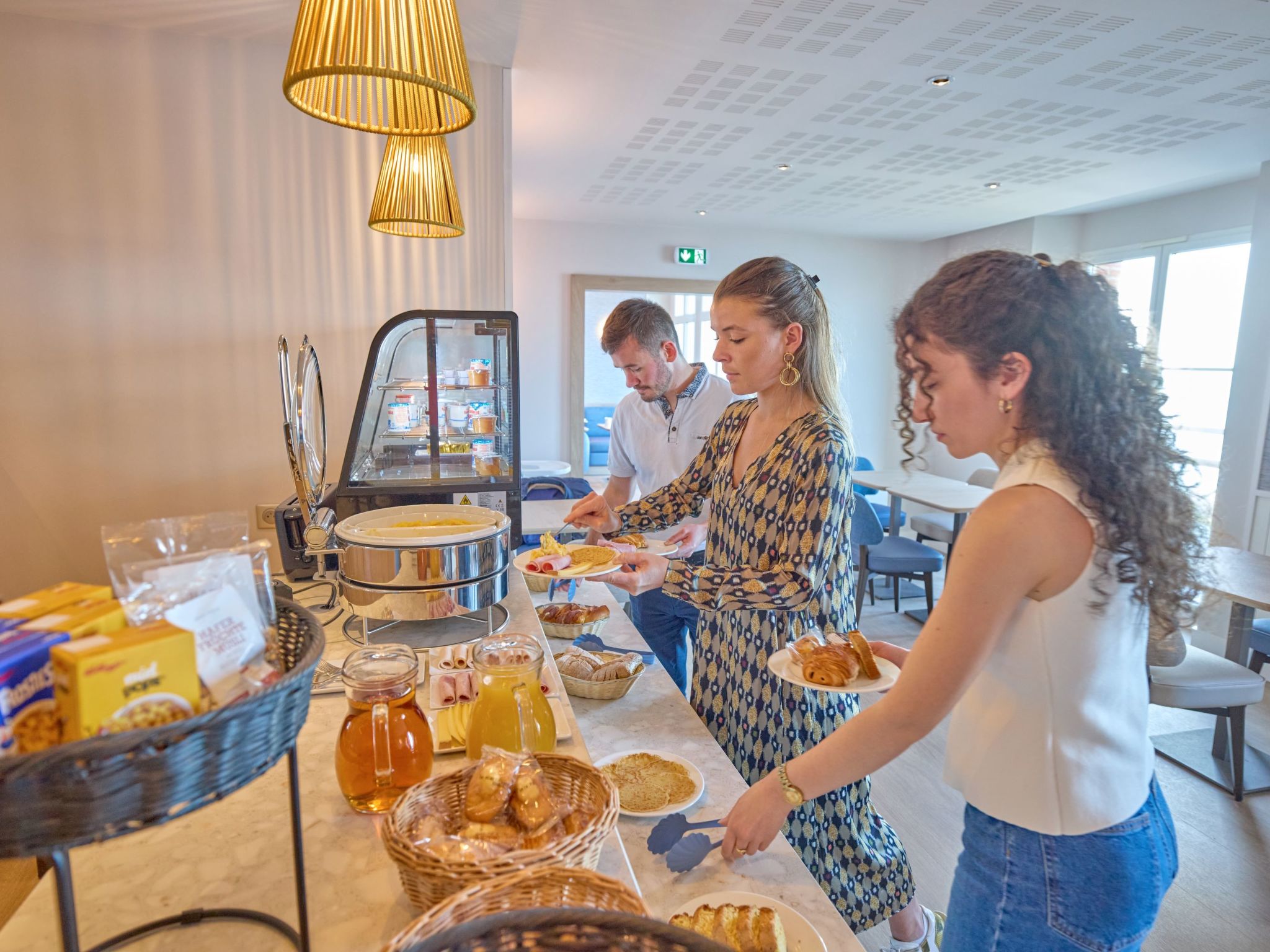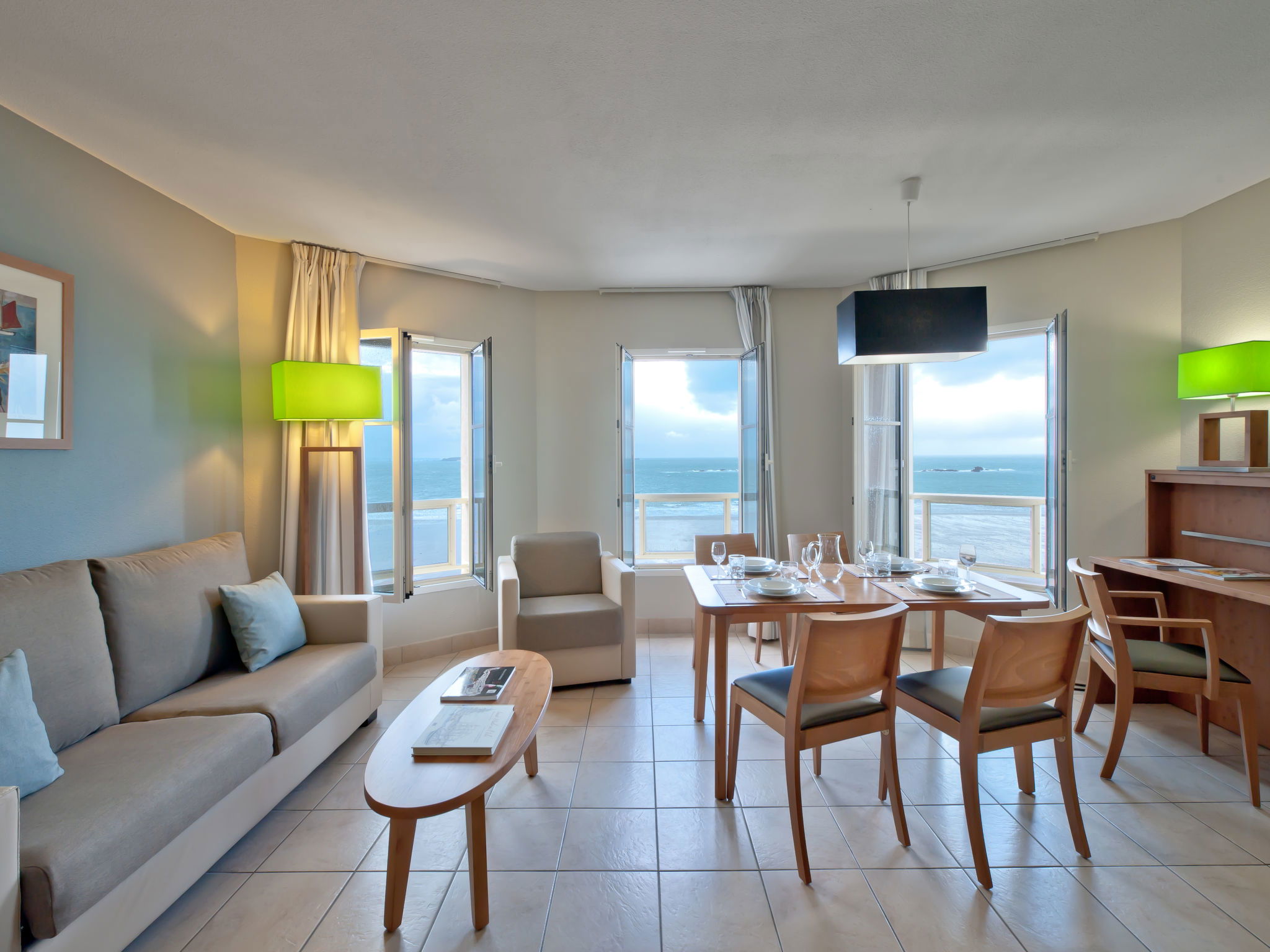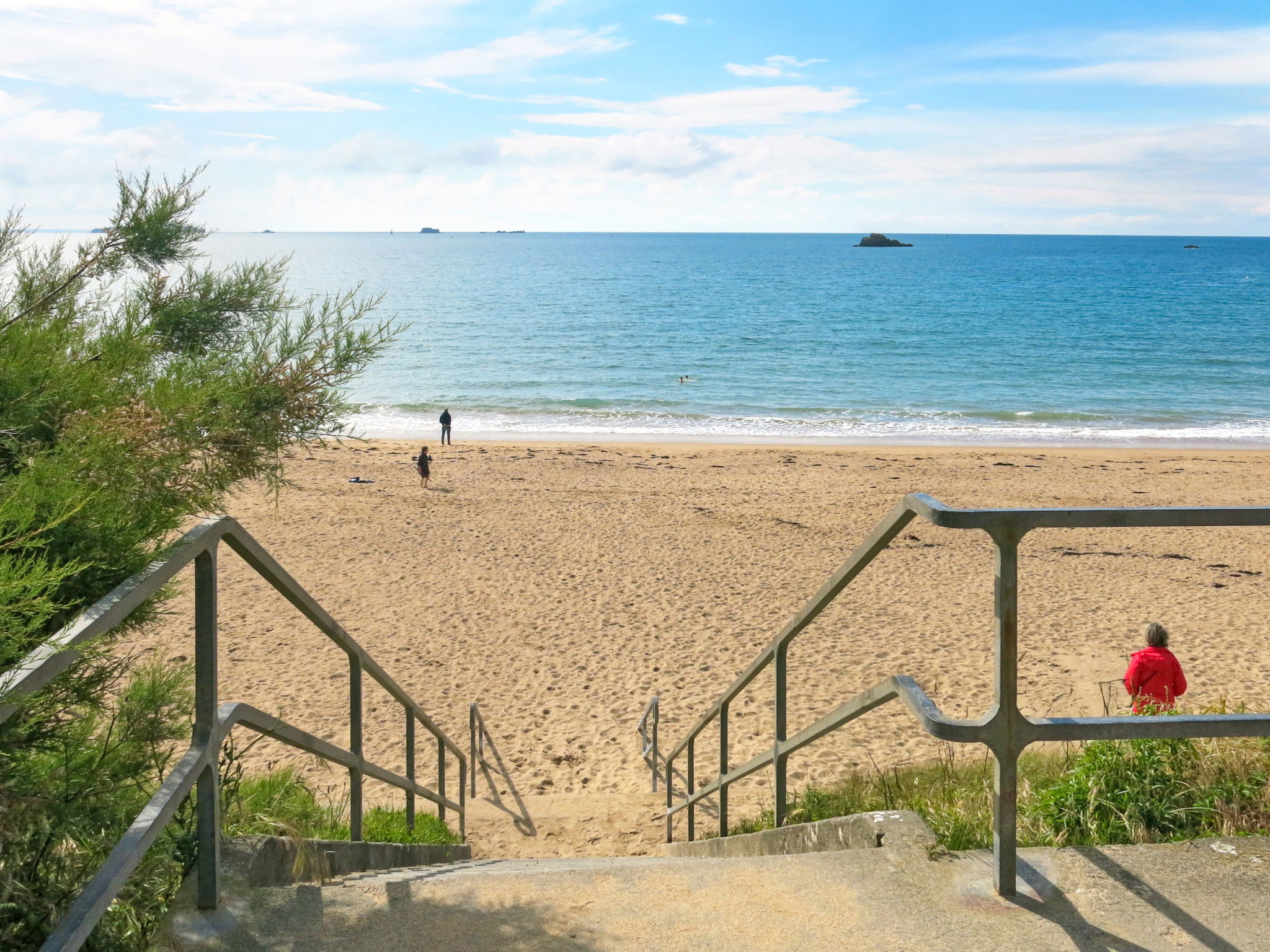 Very beautiful aparthotel "Reine Marine", 4 storeys. 67 apartments in the residence. 3 km from the centre of Saint Malo, 30 m from the sea, direct access to the beach. For shared use: indoor pool heated (13 x 8 m, seasonal availability: 01.Jan. - 31.Dec.). Terrace. In the complex: reception, bar, steam room, lift, storage room for bicycles, washing machine, tumble dryer (for shared use, extra), bicycle rental. Bread roll service. Parking. Electric vehicle charging station. Shop 400 m, sandy beach "Plage de Minihic" 30 m. Sailing school 1 km, tennis 2 km. Nearby attractions: Cancale 12 km, Dinard 13 km, Dinan 36 km, Mont Saint Michel 58 km, Rennes 70 km. Hiking paths: GR34. Please note: the photograph shows a typical example.