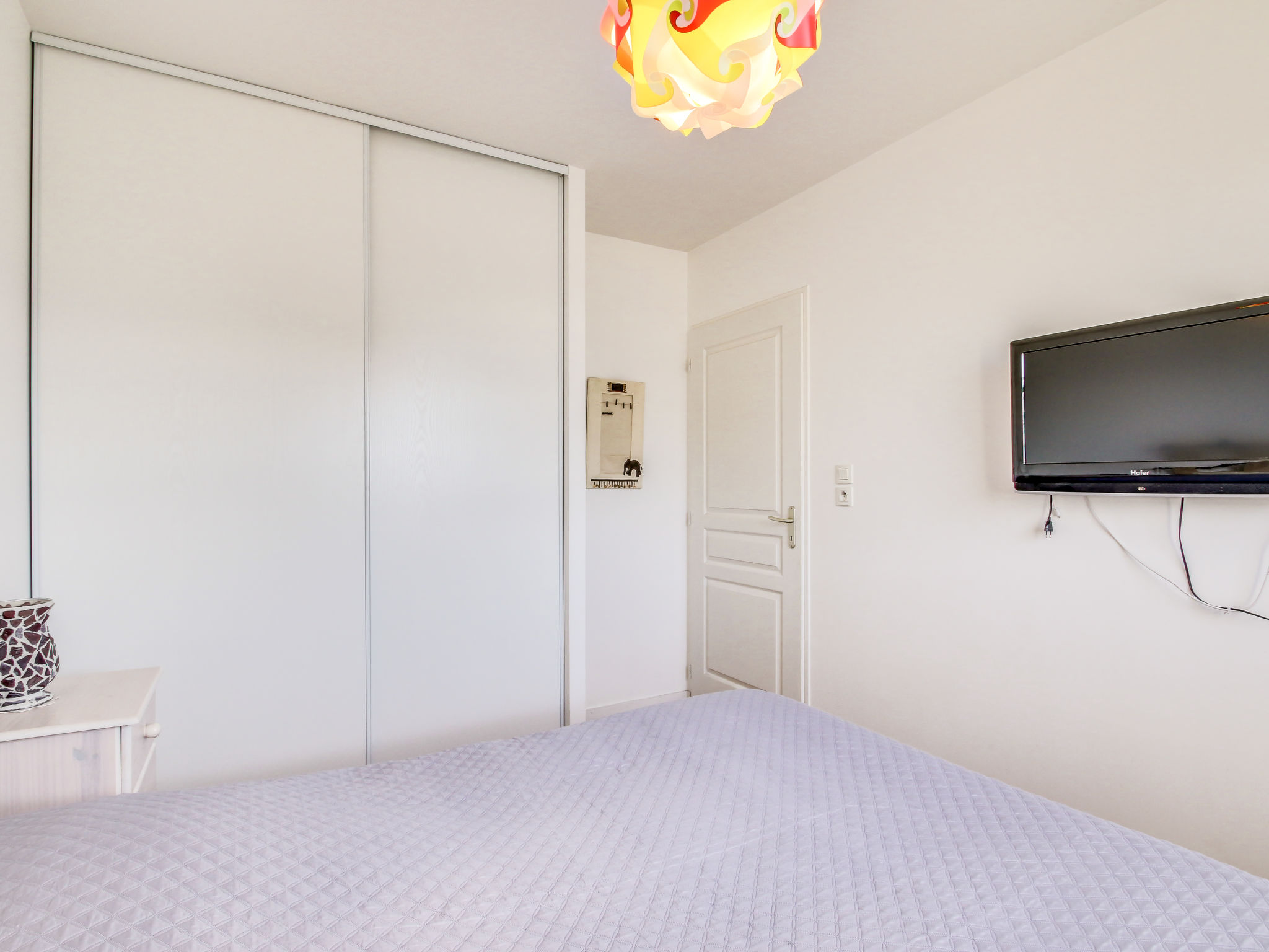 3-room apartment 50 m2 on 2nd floor, south-west facing position. Comfortable and beautiful furnishings: living/dining room with panoramic window with TV (flat screen), Home cinema. Exit to the terrace. 1 room with 1 french bed (1 x 140 cm, length 190 cm), TV (flat screen). 1 room with 1 french bed (1 x 140 cm, length 190 cm). Open kitchen (oven, dishwasher, 3 induction hot plates, microwave, electric coffee machine). Shower, sep. WC. Electric heating. Small terrace 7 m2, south facing position and west facing position. Terrace furniture. Facilities: washing machine, iron, children's high chair, baby cot, hair dryer. Internet (WiFi, free). Garage. Please note: apartment street side. TV only FR. Smoke alarm. 35288000518F9