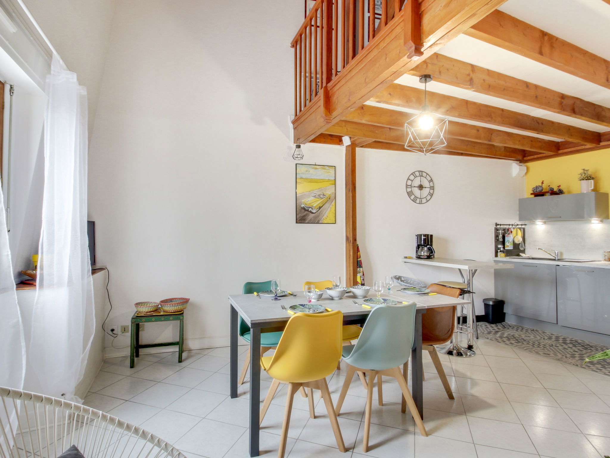 "Emeuraude", 2-room apartment 62 m2 on 3rd floor, south facing position. Beautiful and tasteful furnishings: living/dining room with TV (flat screen). Open kitchen (oven, 4 induction hot plates, microwave, freezer, electric coffee machine). Sep. WC. Upper floor: gallery with 1 double sofabed (1 x 140 cm, length 190 cm). 1 room with 1 french bed (1 x 140 cm, length 190 cm). Shower/WC. Electric heating. Facilities: washing machine, dryer. Internet (WiFi, extra). Please note: smoke alarm. Instead of an enclosed bedroom, some sleeping areas are located in an open-plan area (gallery, alcove, etc.). 3528800288919