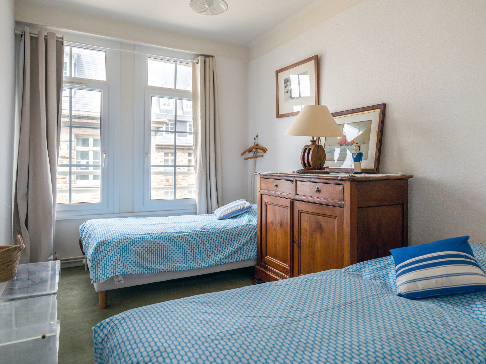Old, beautiful apartment house "Le panoramique", 5 storeys. In the centre of intramuros, in a sunny position, excellent location: right in the centre but still quiet, in the heart of the city, 50 m from the sea, 50 m from the beach. In the complex: lift. Public parking on the road. Short-stay parking zone (fee), time: 09:00 - 19:00, Monday - Saturday. Shop 100 m, grocery, supermarket 150 m, restaurant 100 m, bakery 300 m, café 100 m, railway station "Gare TGV St Malo" 1.5 km, ferry "Gare Maritime du Naye" 900 m, sandy beach "du Môle" 50 m, thermal baths "Thermes marins de St Malo" 2.6 km. Sports harbour 600 m. Nearby attractions: Grand aquarium de St Malo 4 km, Dinan 30 km, Dinard 11 km, Casino Saint-Malo 2 km, Cancale 15 km, Le Mont St Michel 56 km. The apartment is located in a zone with limited traffic.