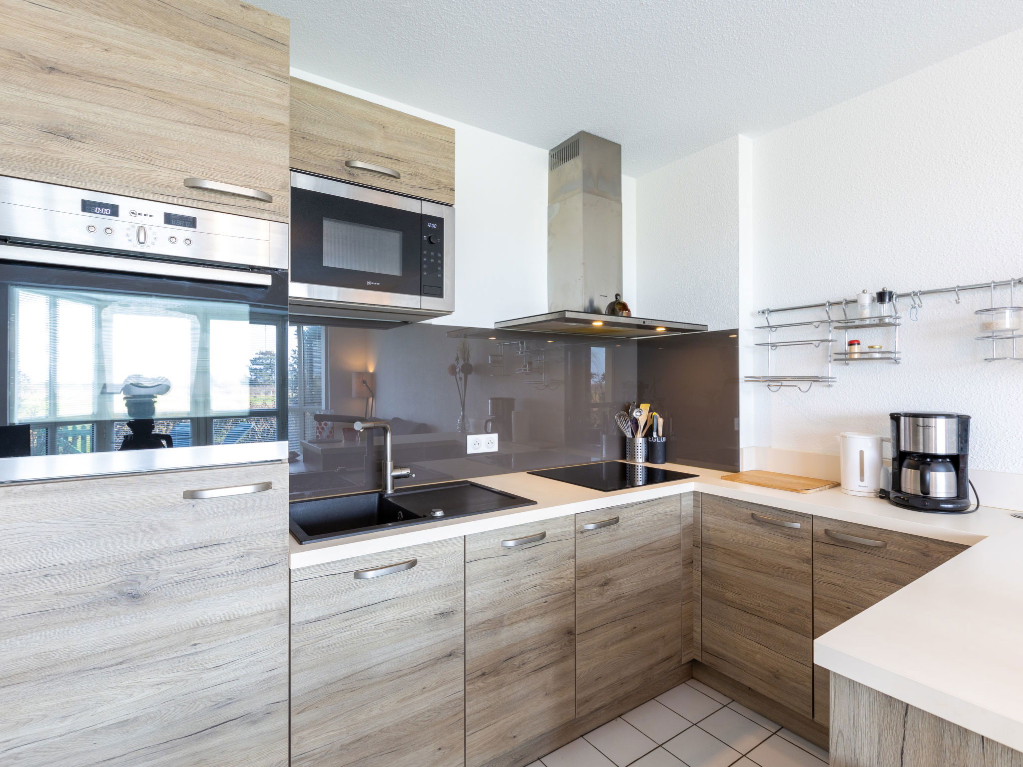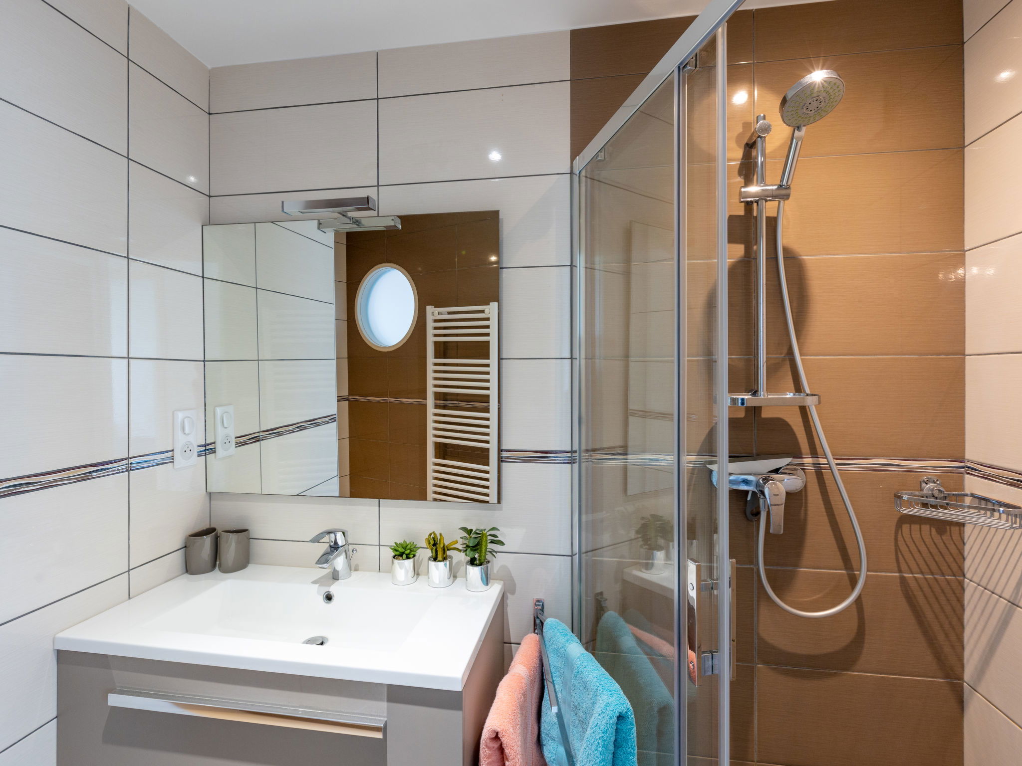 3-room apartment 45 m2, on the ground floor. Partly renovated in 2022, beautiful and tasteful furnishings: living/dining room with TV (flat screen). Exit to the patio. 1 room with 1 french bed (1 x 160 cm, length 190 cm). 1 room with 1 x 2 bunk beds (90 cm, length 190 cm). Exit to the patio. Open kitchen (dishwasher, 3 induction hot plates, toaster, kettle, microwave, freezer, electric coffee machine). Shower/WC. Electric heating. Terrace 30 m2, south facing position. Terrace furniture. View of the sea. Facilities: washing machine, dryer, iron, hair dryer. Internet (WiFi, free). Please note: non-smokers only. Smoke alarm. Offer by a private individual according to Art. 155, IV of CGI. 35288000251B1