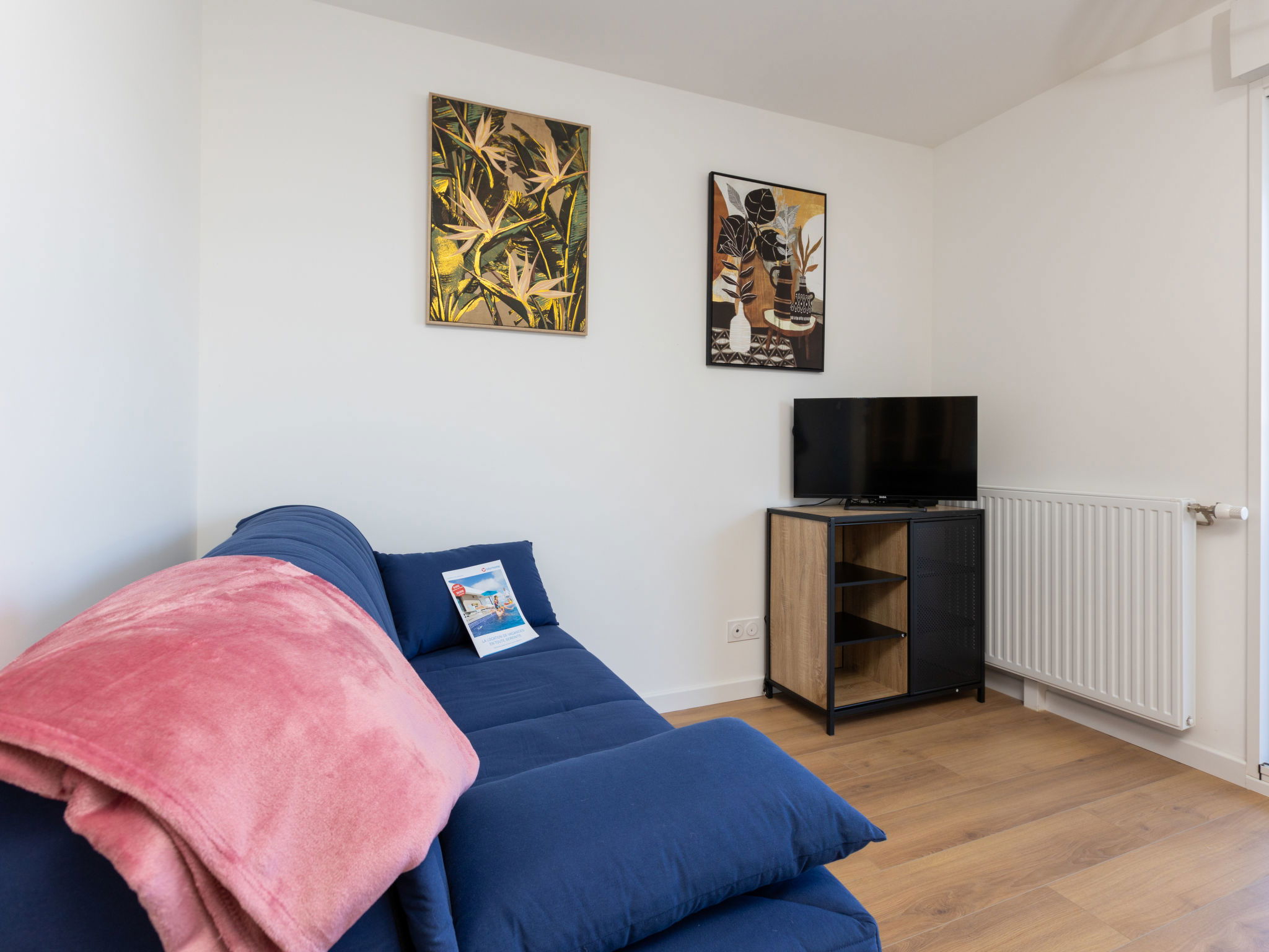 2-room apartment 41 m2 on 2nd floor. Modern and tasteful furnishings: large living/dining room with 1 double sofabed (1 x 160 cm, length 200 cm), TV (flat screen). Exit to the terrace. 1 room with 1 french bed (2 x 80 cm, length 200 cm). Exit to the terrace. Open kitchen (oven, dishwasher, 3 induction hot plates, toaster, kettle, microwave, electric coffee machine). Shower, sep. WC. Gas heating. Terrace 12 m2. Terrace furniture. Facilities: washing machine, hair dryer. Internet (WiFi, free). Parking space n 20 (roofed, fenced 1 car). Please note: smoke alarm. 352880036095F