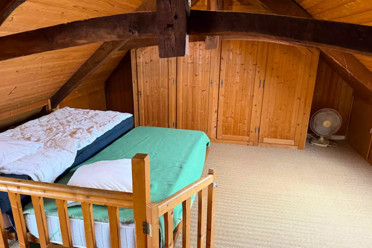 The master bedroom has a double bed (140x190 cm) for restful nights. A second bedroom is furnished with four single beds (90x200 cm), perfect for accommodating children or friends in a convivial space.