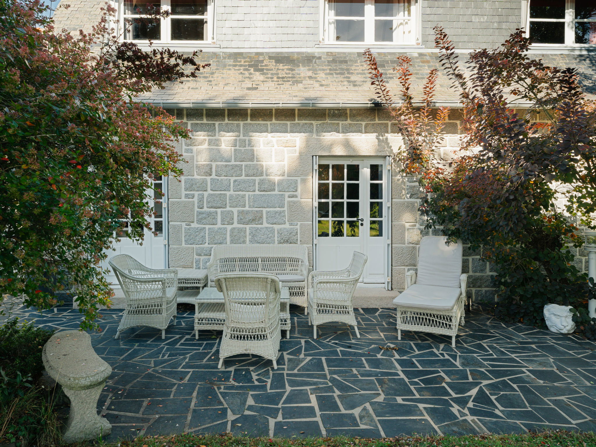 Saint Lunaire 2 km from Dinard: Beautiful single-family house "La Roche Blanche". In the district of La Fourberie, in a quiet position, from the sea, 800 m from the beach, in the countryside, south facing position. Private: well-kept garden 1'000 m2 (fenced) with lawn and trees, single garage. Shop 2.2 km, grocery 1.2 km, supermarket 1.2 km, shopping centre 4.2 km, restaurant 800 m, bar 1.3 km, bakery 1.3 km, café 1.3 km, bicycle rental 2.2 km, bus stop "Le Tertre Herrioux" 700 m, railway station "SNCF de Saint-Malo" 14 km, ferry "Saint-Malo" 13 km, sandy beach "La Fourberie" 800 m, indoor swimming pool 2.8 km, thermal baths "Thalasso de Dinard" 1.7 km. Sports harbour 2.6 km, golf course (18 hole) 5 km, sailing school 1.5 km, indoor tennis centre 2.7 km, minigolf 1.5 km, riding stable 1 km, sports centre 1.7 km. Nearby attractions: Saint Malo et ses remparts 12 km, Le Grand Aquarium de Saint-Malo 8.4 km, Dinan cité médiévale 22 km, Cancale et ses huîtres 24 km, Cap Fréhel et Fort la Latte 34.8 km, Le Mont Saint-Michel 59 km. Please note: suitable for families. The keys‘ handover takes place by the agency in Dinard, 3 km.