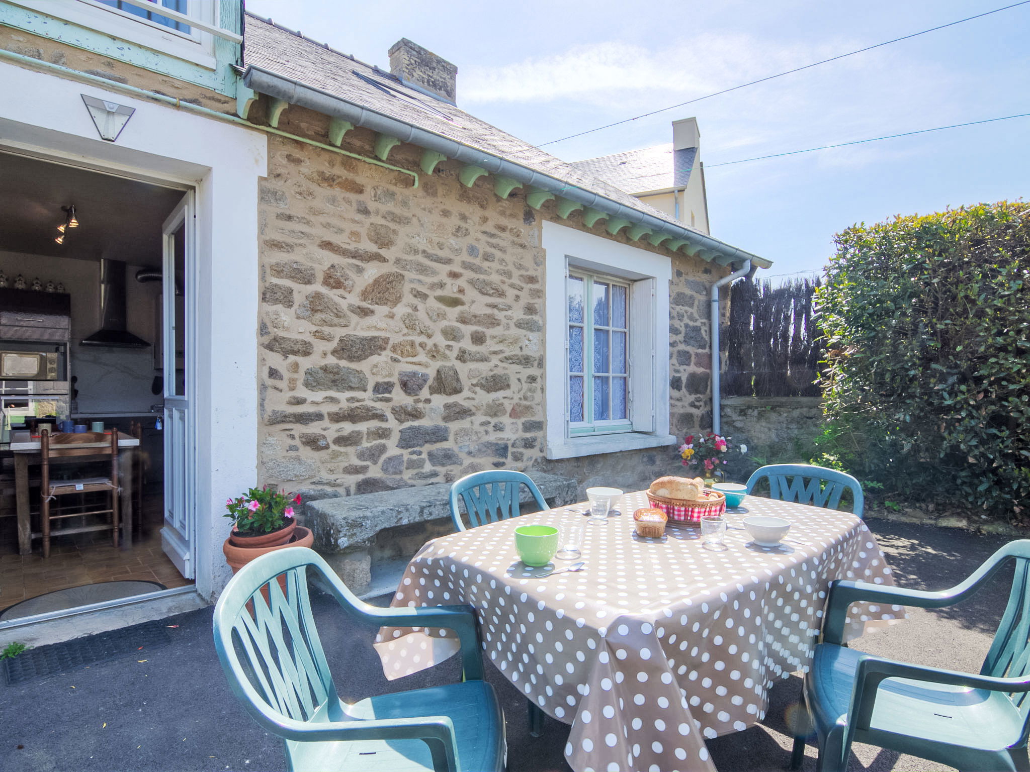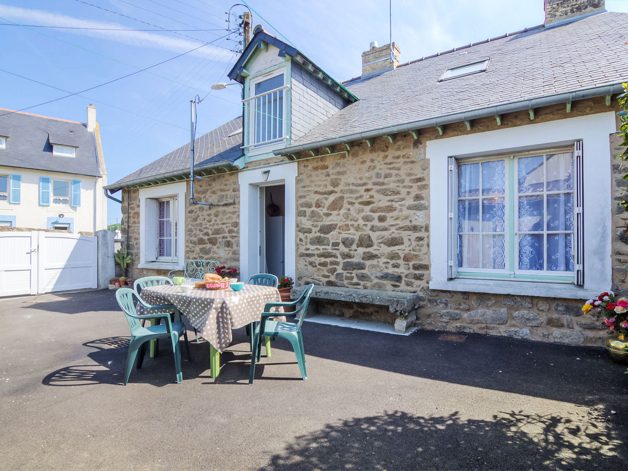Single-family house "Saint Ideuc", 2 storeys. In the district of Saint Ideuc en Paramé, in a quiet position, 1.5 km from the sea, 1.5 km from the beach. Private: garden (fenced), courtyard. Garden furniture, barbecue, parking at the house. Shop 450 m, supermarket 1 km, restaurant 500 m, bakery 350 m, bus stop "Gesril du Papeu" 600 m, railway station "Gare TGV St Malo" 4.9 km, ferry "Gare maritime du Naye" 7.1 km, sandy beach "Le Minihic" 1.5 km, thermal baths "Les Thermes de Saint Malo" 2.4 km. Riding stable 3 km. Nearby attractions: Le Grand Aquarium de Saint malo 6.5 km, Dinard 14 km, Dinan 35 km, Le Mont Saint Michel 55 km, Château et Parc de la Bourbansais 35 km, Cobac Parc 39 km. Please note: car recommended.