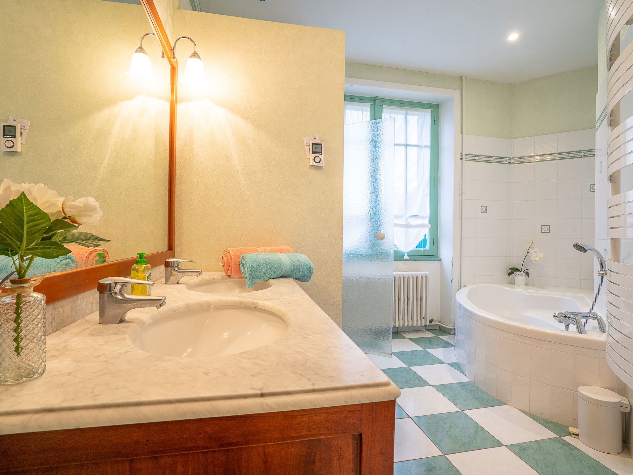 6-room house 160 m2 on 2 levels. Practical and comfortable furnishings: living/dining room with TV (flat screen), hi-fi system and DVD. Exit to the terrace. 1 room with 1 french bed (1 x 180 cm, length 200 cm), TV (flat screen). Large kitchen (5 hot plates, oven, dishwasher, toaster, kettle, microwave, electric coffee machine, Capsules for coffee machine (SENSEO) extra, raclette grill) with dining table. Exit to the terrace. Bath/shower, sep. WC, double hand-basin. Gas heating. Upper floor: 1 room with 1 pull-out bed (2 x 80 cm, length 190 cm), TV (flat screen). 1 room with 2 beds (90 cm, length 190 cm). 2 rooms, each room with 1 french bed (1 x 140 cm, length 190 cm). Bathroom, sep. WC, double hand-basin. Terrace furniture, barbecue, deck chairs (5). Facilities: washing machine, dryer, iron, children's high chair, baby cot, hair dryer. Internet (WiFi, free). Please note: non-smoking house. Smoke alarm. 35288001411FC