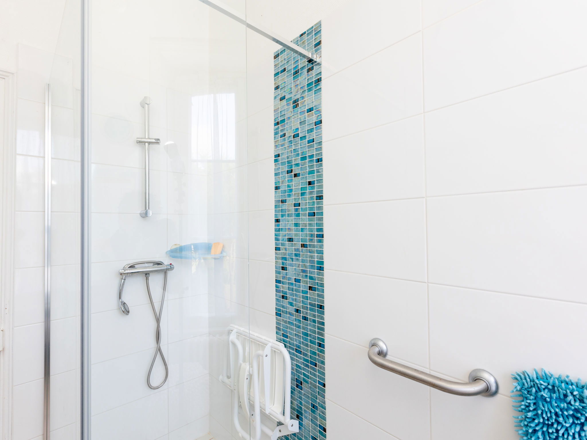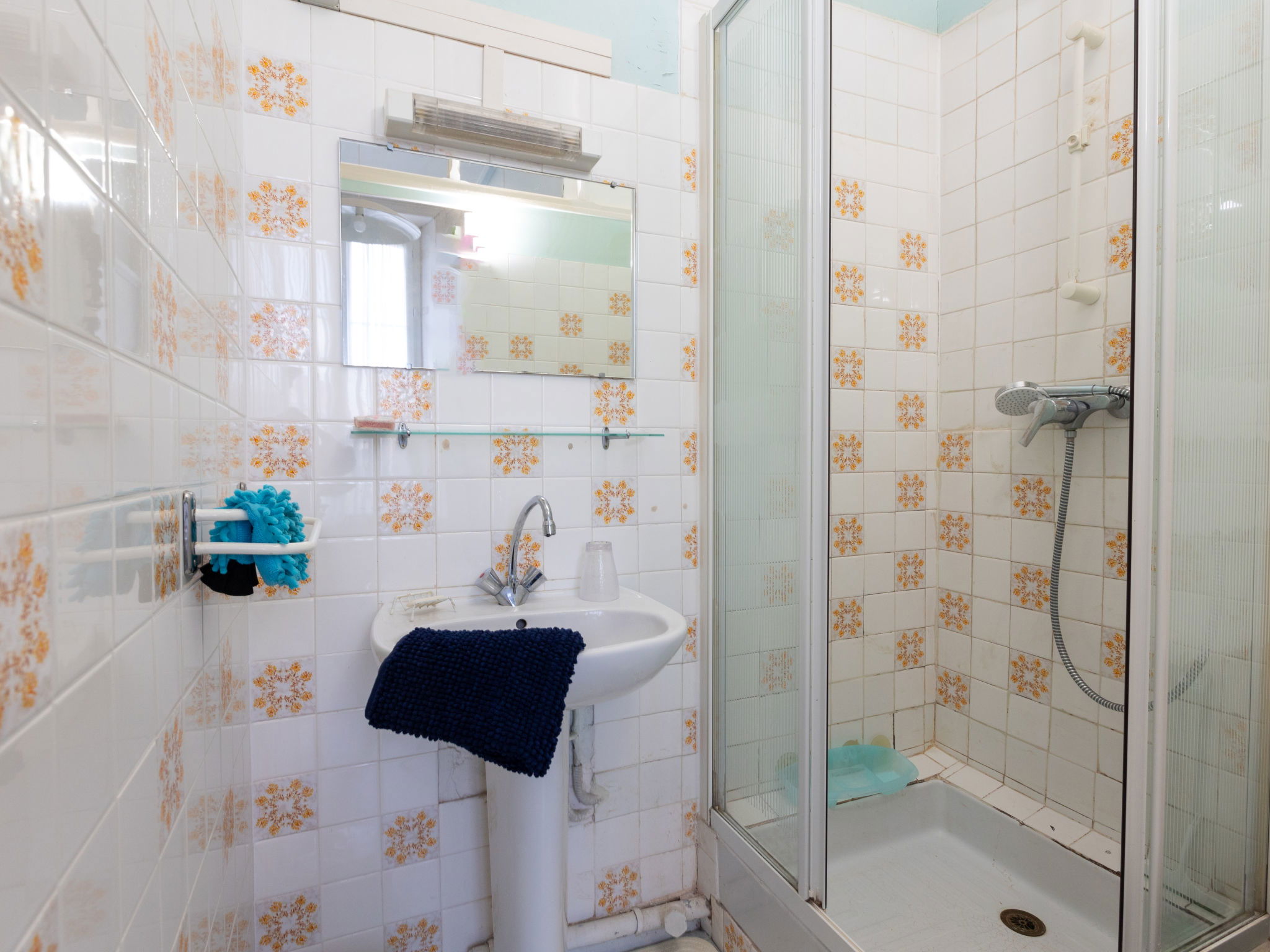 Upper floor: 1 room with 1 pull-out bed (2 pers. 2 x 80 cm, length 190 cm), hand-basin. 1 room with 1 pull-out bed (2 pers. 2 x 80 cm, length 190 cm). Shower/WC.