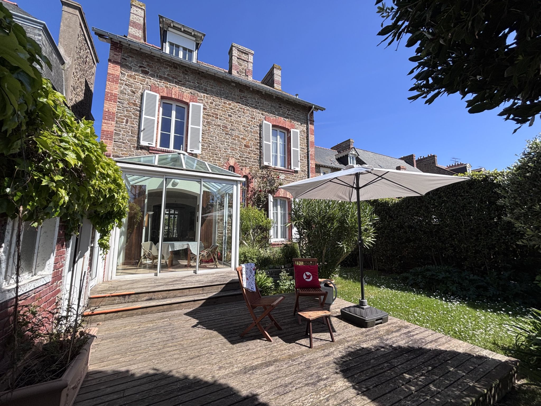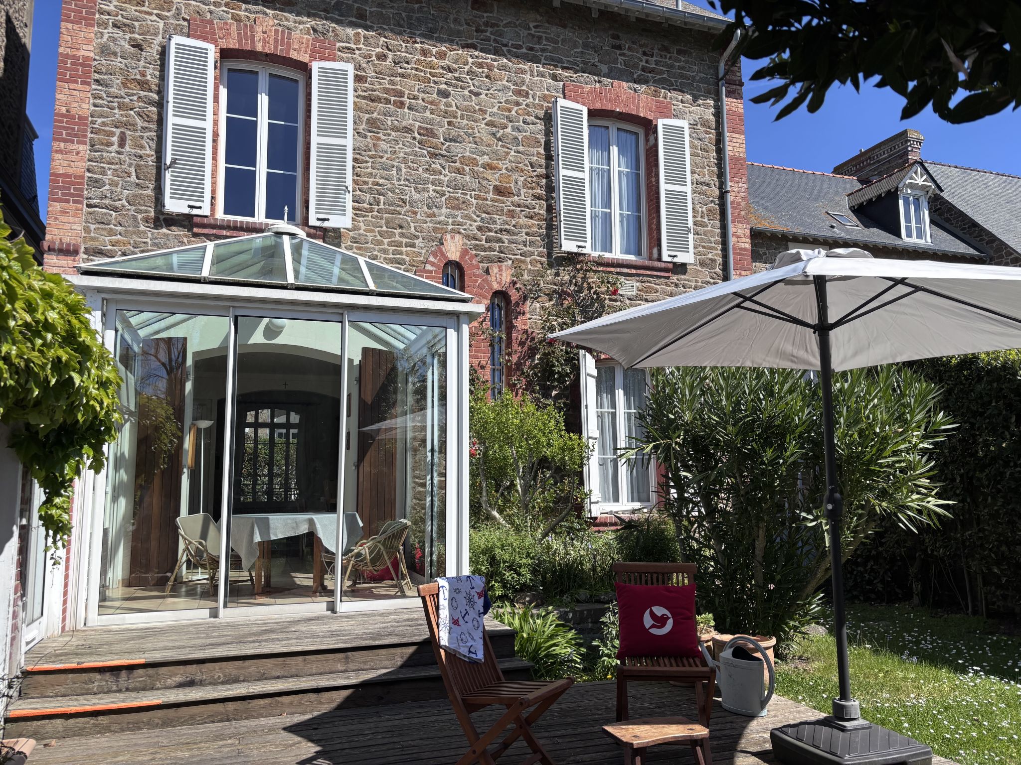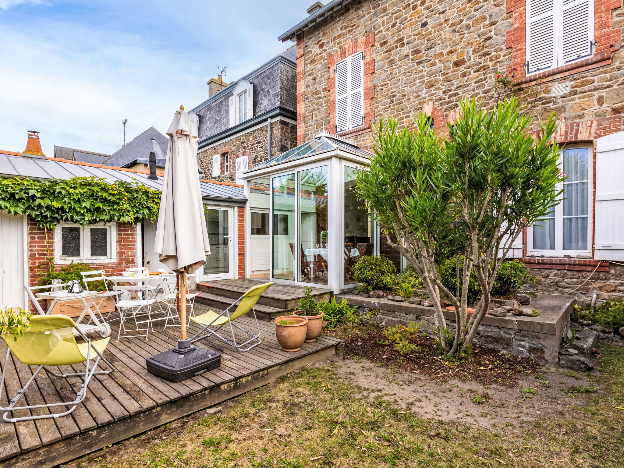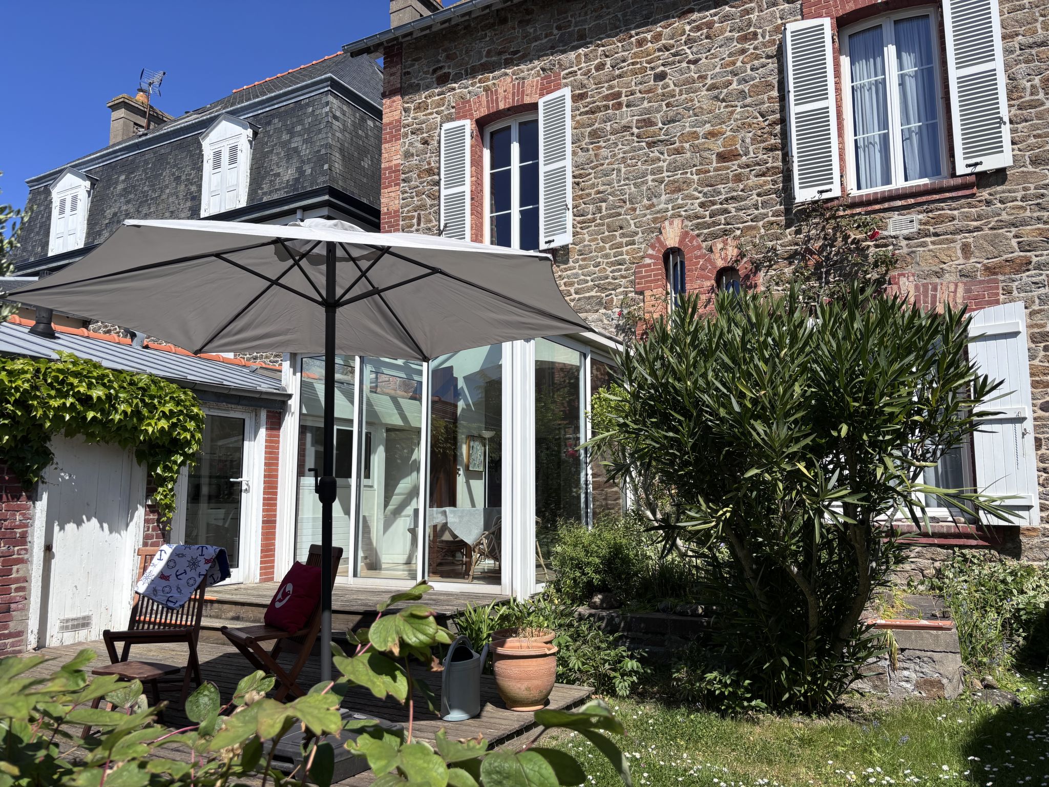 Old, rustic manor house "La Solaine", 3 storeys. In the district of Courtoisville, in the residential district, excellent location: right in the centre but still quiet, from the sea, 280 m from the beach. Private: well-kept garden (fenced) with lawn 200 m2. Terrace, garden furniture, barbecue. In the house: storage room for bicycles. Public parking on the road. Shop 300 m, grocery 240 m, supermarket, shopping centre 4.4 km, restaurant 400 m, bar, bakery 300 m, bicycle rental 350 m, sandy beach "Plage du Sillon" 700 m. Sports harbour 1.8 km, golf course (18 hole) 17.5 km, surf school, sailing school 500 m, minigolf 9.2 km. Nearby attractions: Cancale 13.7 km, Dinard 12.4 km, Dinan 31.2 km, Dol de Bretagne 27.8 km, Grand Aquarium de Saint-Malo 4.8 km, Mont Saint-Michel 53.8 km.