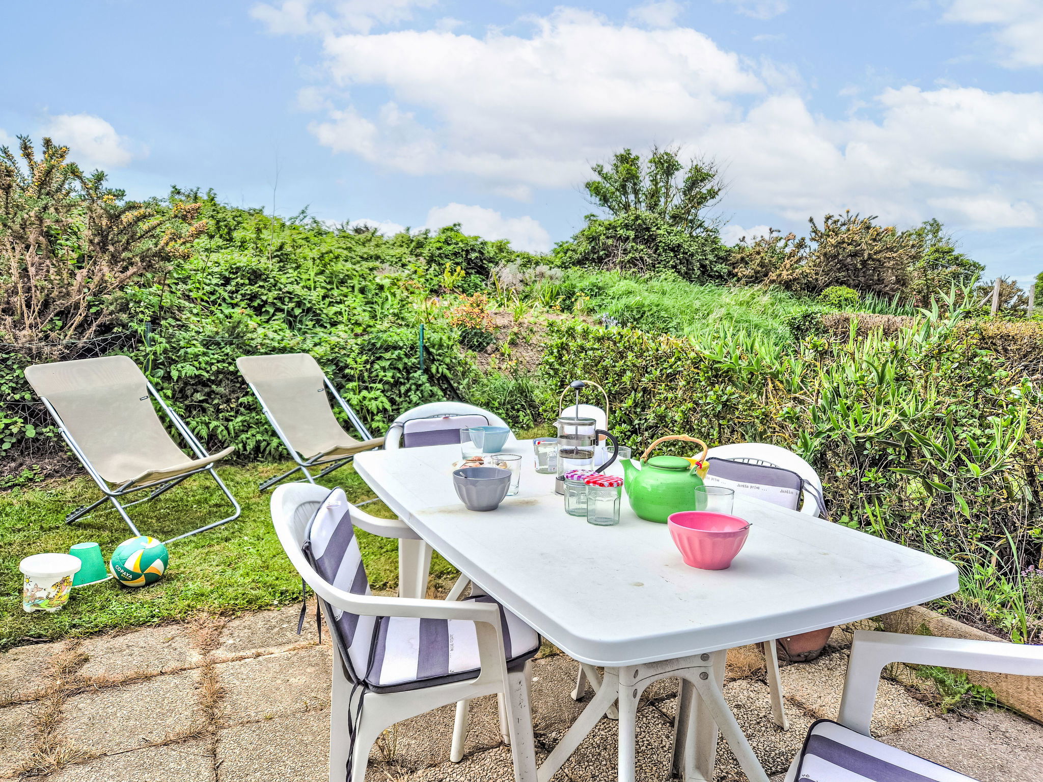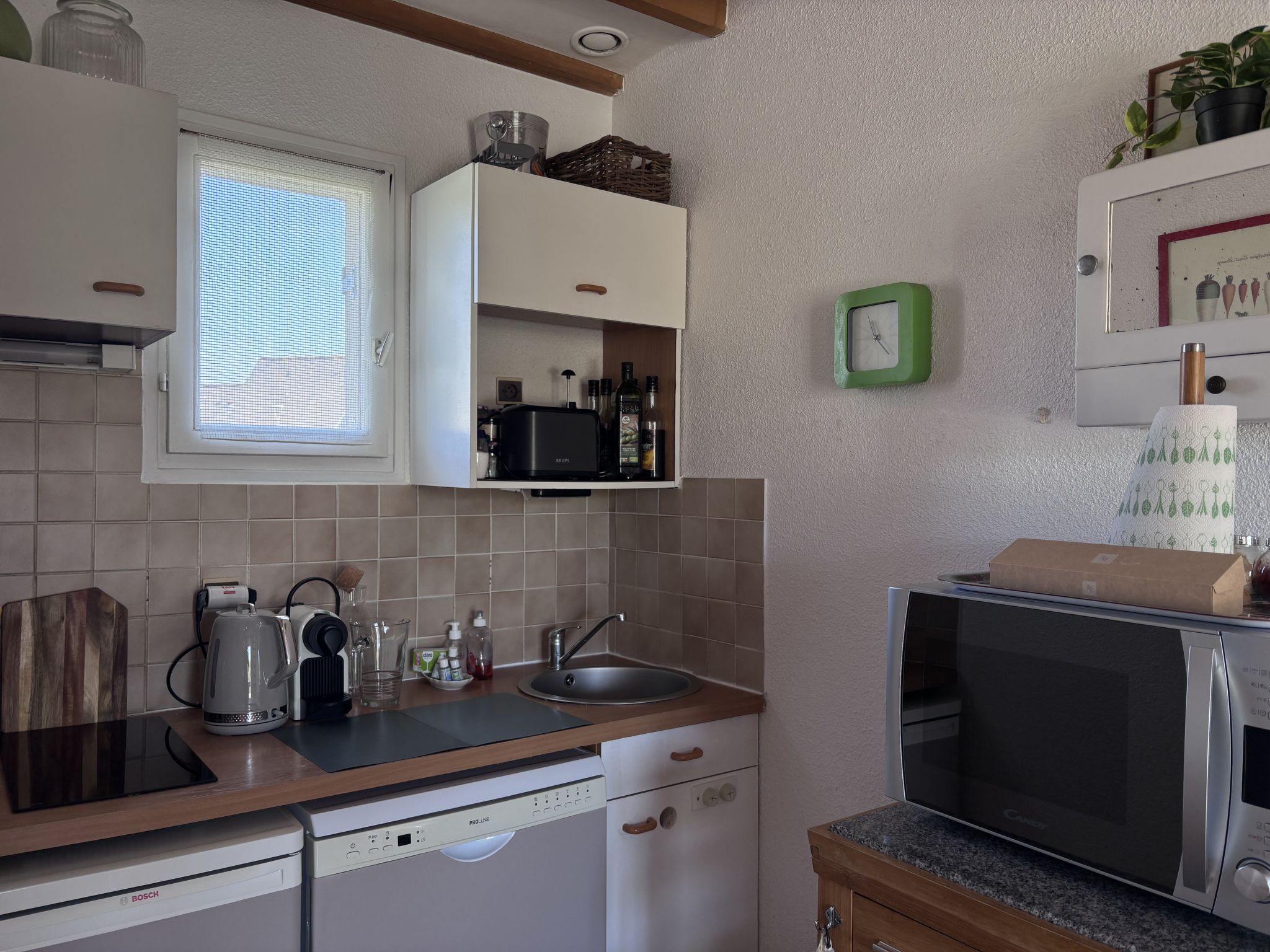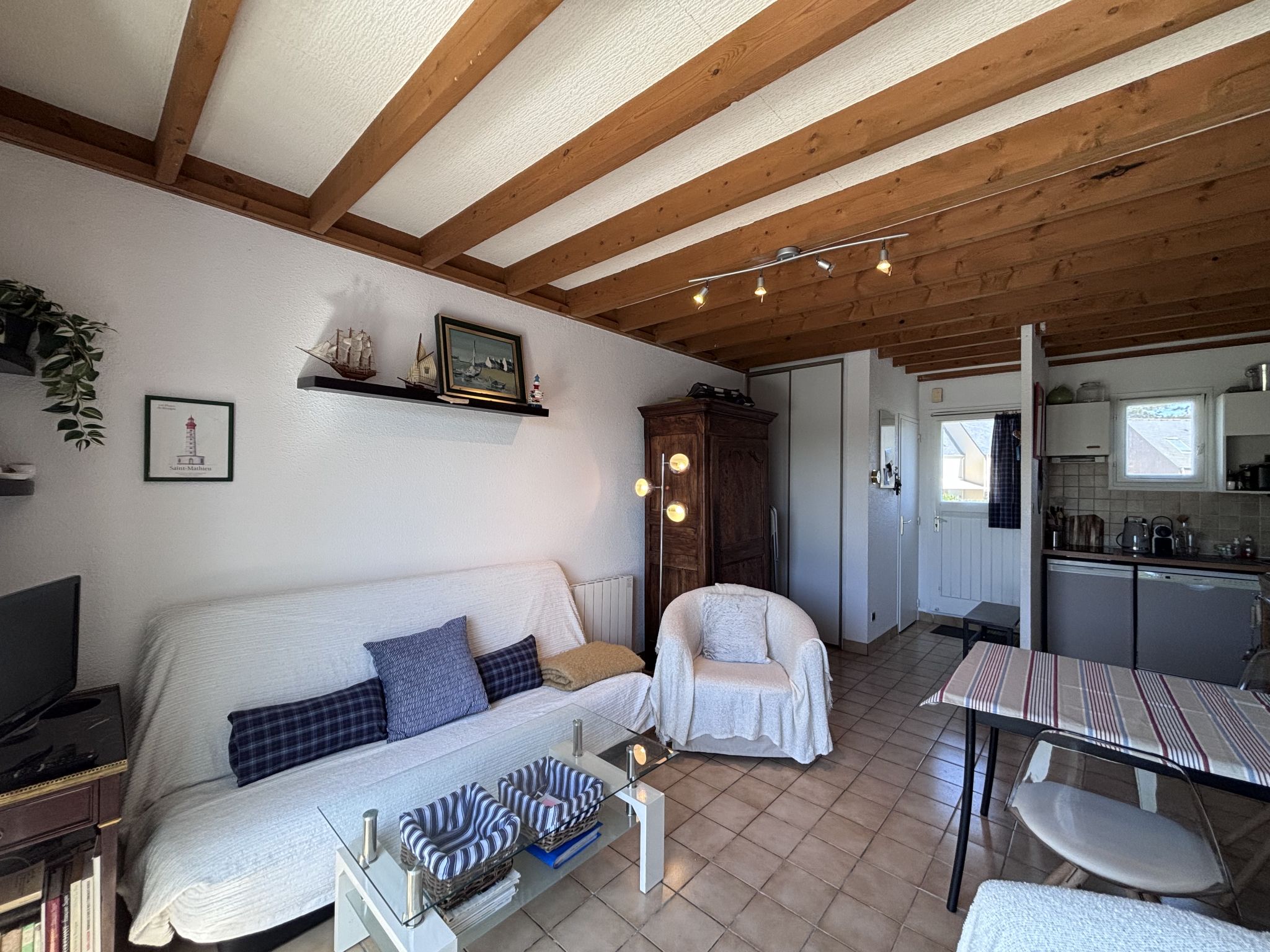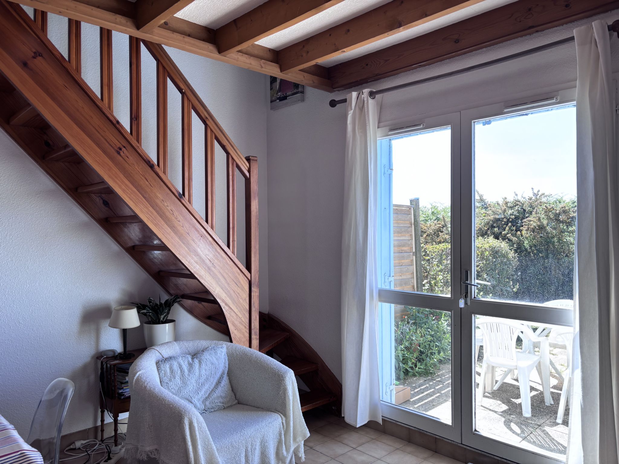 3-room terraced house 47 m2 on 2 levels. Comfortable and beautiful furnishings: large living/dining room with TV (flat screen). Exit to the garden, to the terrace. Kitchenette (dishwasher, 2 induction hot plates, toaster, kettle, electric coffee machine, combination microwave, fondue Set (cheese)). Sep. WC. Upper floor: 1 room with 2 beds (90 cm, length 190 cm). 1 room with 1 french bed (1 x 140 cm, length 190 cm). Bathroom. Terrace 10 m2, patio. Terrace furniture. Beautiful view of the swimming pool and the countryside. Facilities: Internet (WiFi, free). Parking space n 714 (1 car). Please note: non-smoking house. Smoke alarm. Offer by a private individual according to  Art. 155, IV of CGI. 35288005848B8