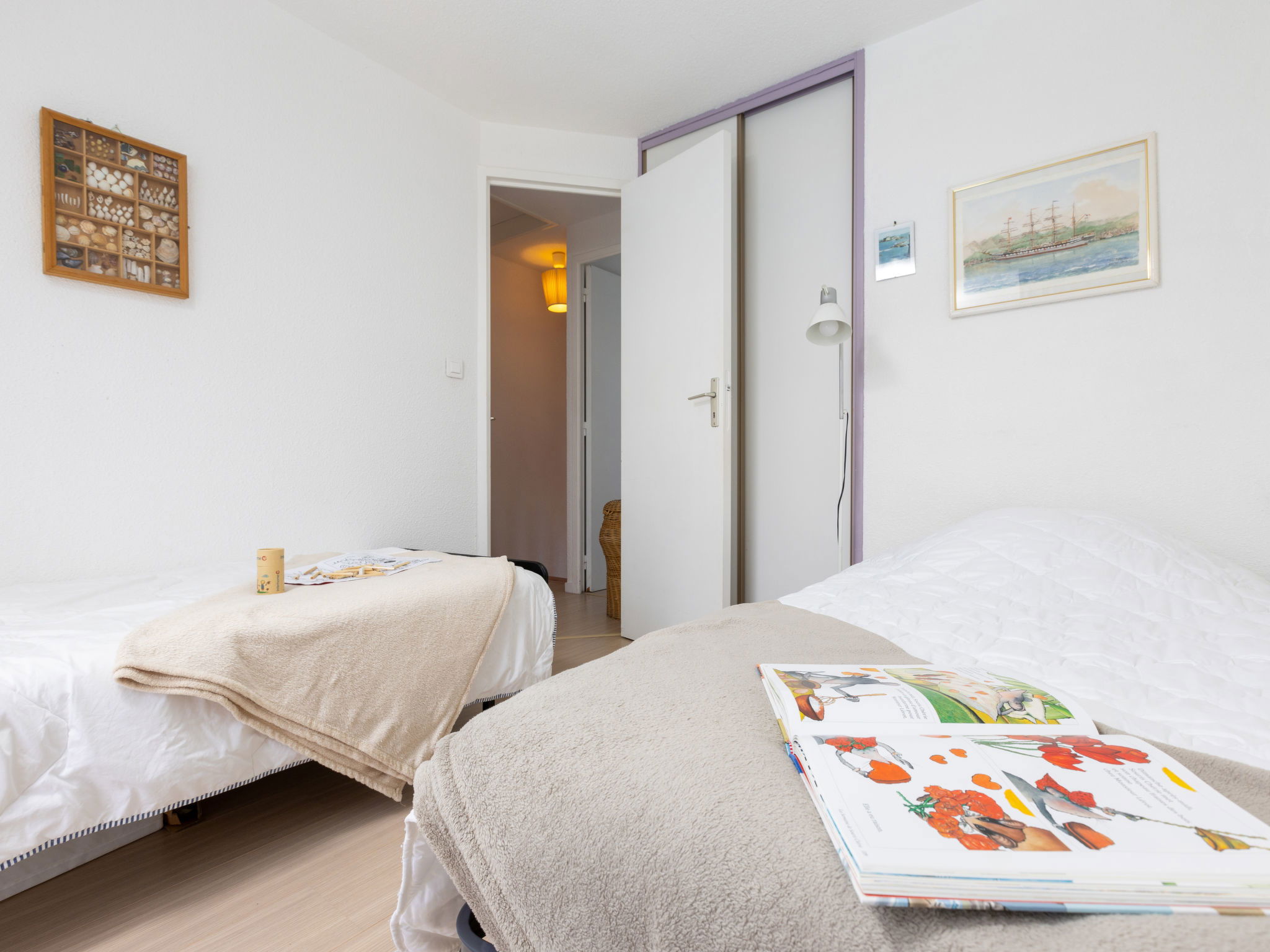 Residence "La Baie des Corsaires", built in 1993. In the district of Rothéneuf - La Varde, in a quiet position, 150 m from the sea, 250 m from the beach. For shared use: garden with lawn, swimming pool fenced (18 x 8 m, seasonal availability: 15.Jun. - 15.Sep. pool opening hours: 09:00-20:00). Outdoor shower, tennis, table tennis. In the complex: washing machine (extra), tumble dryer (extra). Public parking 50 m on the road. Shop, grocery, restaurant 900 m, bakery 1.2 km, bus stop "Nicet" 450 m, railway station "Gare TGV St Malo" 4.8 km, ferry "Gare maritime du Naye" 6.7 km, sandy beach "Plage du Pont" 250 m, diving center 6.5 km, outdoor swimming pool 6.5 km, thermal baths "Les Thermes Marins de Saint Malo" 3.5 km, swimming bay 150 m. Sports harbour 6 km, marina 6 km, golf course (18 hole) 15.6 km, surf school 3.5 km, sailing school 1.5 km, tennis 50 m, riding stable 10 km. Nearby attractions: Les Rochers Sculptés 1.4 km, Musée Jacques Cartier 2.1 km, Le Grand Aquarium 7.8 km, Cancale 12.4 km, Dinard 15.6 km, Mont Saint Michel 58.7 km.